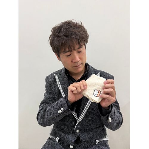 酒井雄二の誕生日を記念してスタートした、全身のコーディネートをパンデザインで施す“全身パン化計画”。企画第四弾として「パンカチ」の受注販売がスタート!