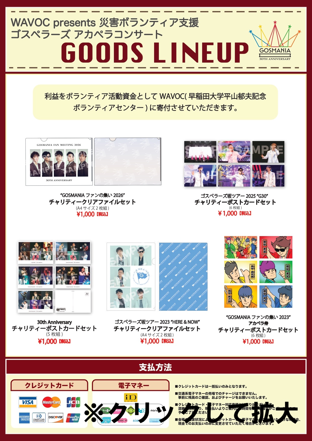 「WAVOC presents 災害ボランティア支援 ゴスペラーズ アカペラコンサート」にてグッズ販売が決定いたしました!
